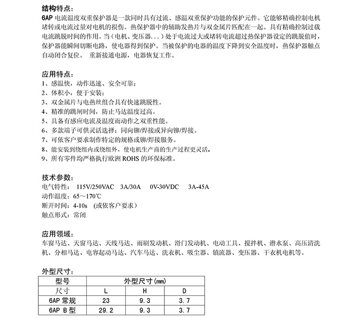 6AP系列熱保護器